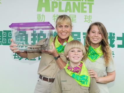 「你們知道鱷魚為什麼老是張著嘴嗎?」《鱷魚拍檔保育戰士》節目主角、澳洲「鱷魚先生」史帝夫厄文的遺孀泰瑞厄文,問起台北市立動物園兩棲爬蟲館前數百名大小朋友這個有趣的問題。泰瑞20日與女兒賓蒂、兒子羅伯特來台...