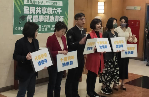 「通膨時代青年更難還學貸,政府應協助償付1年!」民進黨立委鍾佳濱、賴品妤、吳思瑤、何欣純、賴惠員與范雲12日共同召開記者會,呼籲政府撥出40億協助青年償還1年學貸。賴品妤說,現在學貸要越收入4萬以下才能緩...