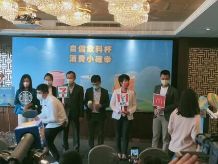 「增加自備飲料杯優惠,減少更多塑膠使用!」環保署與7-11、全家超商、麥當勞等業者29日召開記者會,環保署官員宣布,7月起在連鎖飲料店、速食店等4大場所,自備飲料杯將享有5元以上優惠,如7-11、麥當勞等...