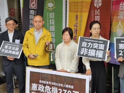 大法官會議的運作是國家重中之重的事,可惜卡在總統沒有再提適合的人選,給立法院審查,以至於憲法法庭長期停擺無所事事。民間監督大法官聯盟22日在風雨中請命,「希望大法官不要被違憲法律困住,主動處理新《憲訴法》...