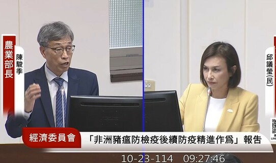 面對台中爆發非洲豬瘟,藍綠在質詢時隔空互相怪罪!綠委邱議瑩23日在質詢時批評台中市政府延遲10天篩檢、市長盧秀燕不親自坐鎮防疫記者會,還要民眾多來台中購物、拚經濟,同時批評藍白刪防檢媒宣費;但藍委鄭天財回...