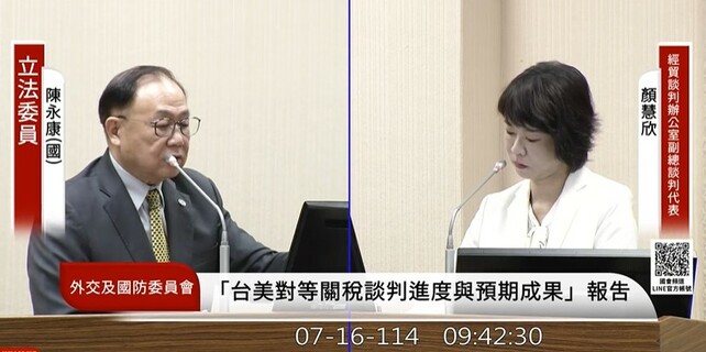 「我們是否有透過在地台商或友台參眾議員,跟美方談判代表接觸?」「談判是否會犧牲我國農產品利益?」綠委陳俊宇16日質詢表示,盼政府能加強接觸美方友台人士,外交部次長陳明祺表示都有持續接觸;藍委陳永康則提醒,...