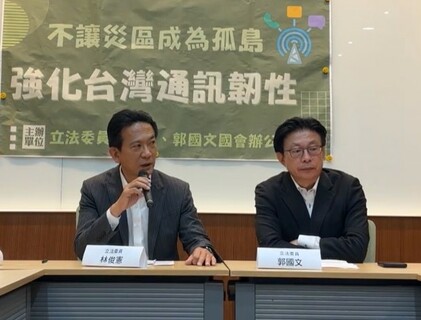 「此次風災凸顯台灣通訊體系的脆弱,政府未來要積極改善!」綠委林俊憲、郭國文23日召開記者會,呼籲數發部、NCC、三大電信業者在本周儘速恢復災區通訊,未來也要推動光纜地下化,以強化未來面對重大風災的通訊韌性...