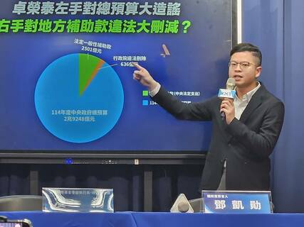 「行政院長卓榮泰砍地方補助款,已經違反《財劃法》,且攸關地方社福、教育預算,盼趕快收回成命!」藍市議員凌濤5日於記者會列舉說,包括中輟生輔導、公幼2歲專班的預算都被砍;新北市議員江怡臻也說,監察院被刪預算...