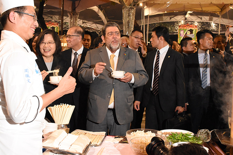 總統蔡英文與聖文森總理龔薩福在國慶酒會中一路同行,用實際行動為兩國斷交闢謠。繼白天的國慶大會以「台灣有你真好」為慶祝主題,晚間由外交部主辦的國慶酒會則端出鼎泰豐、原住民風味、東南亞料理等在地化特色佳餚。 ...