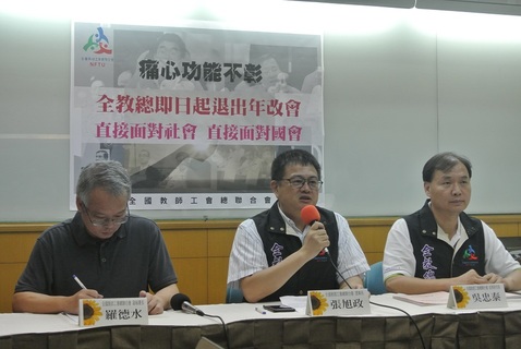 由於不滿年金會部分委員在會中對其他委員的抹黑與侮辱,全教總理事長張旭政7日召開記者會宣布,全教總即日起退出府方的年金改革委員會,未來將自行推出公會版本,直接向大眾及黨團說明,並呼籲民進黨政府應盡快提出改革...