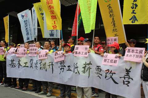 「調升基本工資!改善勞工低薪!」團結工聯12日於勞動部前提出三大訴求:要求調漲基本工資至少5%、反對移工工資與基本工資脫鉤、就「最低工資法」立法,儘速進行政策辯論。對此,勞動部將於14日召開基本工資審議委...