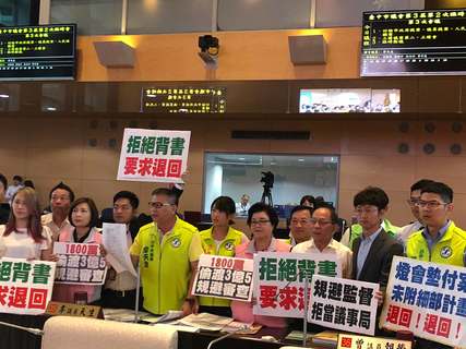 「台灣燈會在台中」一波三折,終於通過預算。台中市議會召開臨時會討論台灣燈會墊付金額共3億5千餘萬元。民進黨議員紛指責市府未提出燈會計畫項目明細就要求議會同意墊付案,全體綠營議員要求退回墊付案,但在議長張清...
