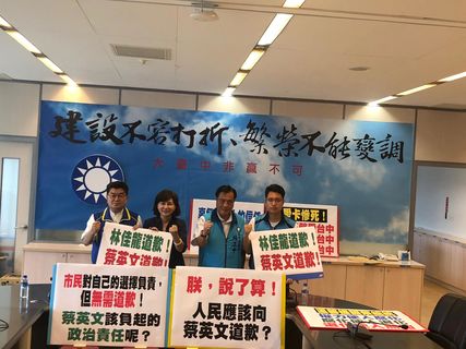 「權力使蔡英文退化!」上周末總統蔡英文到台中一場活動中致詞時,忽然冒出一句,「你們(台中市民)應該向一個人道歉」,並手指前市長林佳龍,林並站起來致意。台中市藍營議員21日召開記者會,痛責蔡英文每天講守護台...