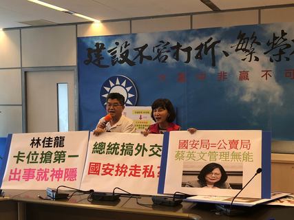 「國安局長下台了,林佳龍也應知所進退!」國民黨台中市議員李中、黃馨慧23日下午舉行記者會,針對國安人員竟然利用總統蔡英文出訪時機走私洋菸,除了國安問題須撤查外,也要求交通部長林佳龍負起政治責任,「知所進退...