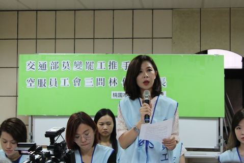 「長榮罷工、一定成功!」、「罷工是人權!」桃園空服員職業工會4日下午聚集長榮空服員及各地聲援工會約八百人舉行遊行,起點長榮公司,行經行政院、總統府到終點張榮發基金會,訴求資方改善過勞航班、威權管理與毫無誠...