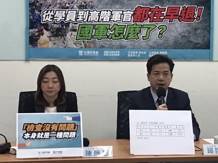 兩岸兵兇戰危,政府卻留不住國軍?民眾黨立委邱臣遠13日指出,國軍近3年有超過8千人申請退伍,未來恐陷無兵可用的狀況。同黨立委陳婉惠指出,離島士兵失蹤、無肉可吃,近期更鬧出軍備遺失等事件,都打擊國軍士氣,呼...
