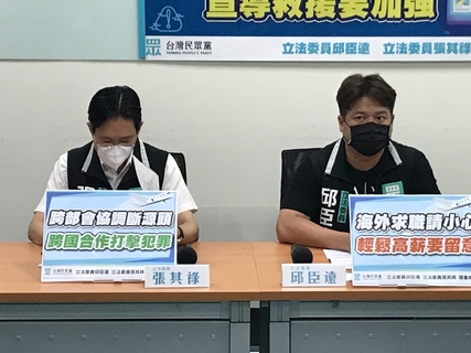 高薪出國打工,暗藏詐騙陷阱!民眾黨立委邱臣遠於14日記者會指出,國際詐騙集團以高薪海外打工為噱頭來誘騙國人,但有些人到國外隨即被拘禁,強迫從事非法工作。外交部亞太司司長周淦民表示,目前已強化與在地台商的合...