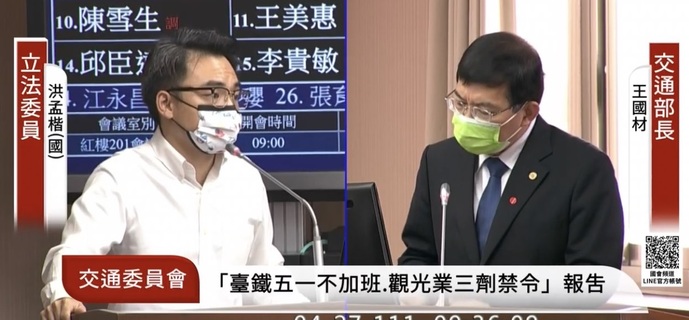 五一罷工行動癱瘓台鐵量能,交通部增開兩條「類火車」路線!交通部長王國材27日赴立法院接受備詢,藍委洪孟楷質問,「類火車」是否會有塞車狀況,並提到外界估計花東路段恐阻塞7小時以上,部長怎麼看?王國材回應,「...