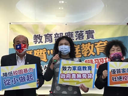 教家長比教孩子更有效!跨縣市教師工會聯合於1日召開記者會聯合呼籲,重視家庭教育才是校園暴力的解方。國民黨立委葉毓蘭說,孩子會從家庭暴力中,耳濡目染學到處理情感的錯誤方式。苗栗教師職業工會理事長胡延龍則說,...