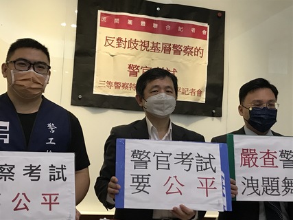 警大獨佔警察考試,恐造成治安政策單一化、警員品格不等問題!民間團體30日召開記者會控訴,2020年有93%的錄取者都是從警大畢業,但卻出現警大洩題、考試歧視等現象。司法改革基金會辦公室主任蕭逸民質疑,對以...