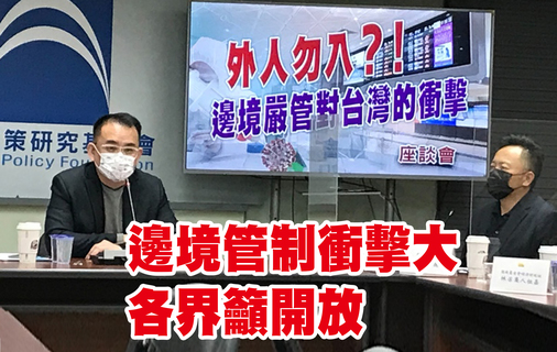 邊境嚴管傷害台灣的國際交流與民生經濟,藍智庫呼籲隨著疫情趨緩,管制也應逐步開放!產業暨新創中心召集人簡榮宗說,過於嚴格的防疫將影響台灣與國際的接軌,如國外專家無法來台審查專業計畫。民間旅遊業與工業業者也反...