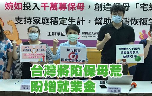 台灣將陷入找不到保母的困境!雙薪家庭愈來愈多,保母需求隨之增加,但保母數量卻始終低迷。彭婉如基金會推動保母經濟三隻箭,包括保母就業獎助金、保母實習制度與邀請居家托育中心一同招募保母人力,盼推動招募300位...