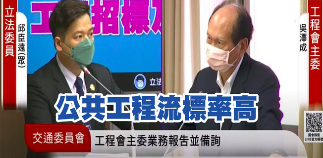 立委陳歐珀4日指出,台灣公共工程流標率高,除了缺工與物價問題外,「最低標文化」也是主因之一。立委邱臣遠說,鐵路局責任轉移速度緩慢、決標率低,至今僅三件標案由鐵路局代辦招標,憂慮太魯閣後的鐵道安全會是「計畫...