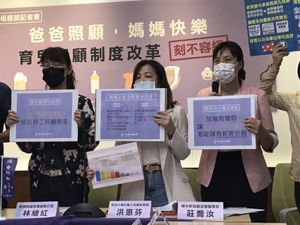 母親節將至,婦女團體5日召開記者會指出,台灣生育率一路下滑,台灣育齡家長卻處在工時最長、休假最少的處境,但政府卻僅想靠發錢催生,呼籲政府應展開育兒照顧制度改革,包括增加育嬰津貼至實質9成薪、放寬家長雙方不...