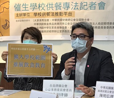 應設立《學校供餐法》,以便規範營養午餐的專業人力、食材供給,孩子才能在學校吃得健康安心!大享食育協會等民團6日宣布,將推出台灣首部民間版《學校供餐法》專法,該專法包含推展飲食教育、設立專責單位監督等亮點,...