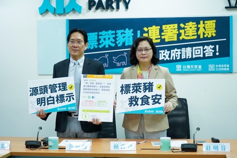 「標示萊豬、新增貨號、再製品需加註等3大訴求連署門檻都已達標,政府該回應了!」民眾黨立委賴香伶、張其祿5日表示,由民眾黨發起的「標萊豬、護食安」連署活動,線上連署25天達到5,000人門檻;對此,國發會資...