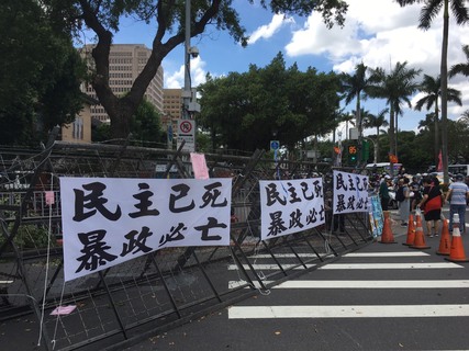 「民主已死、暴政必亡!」立法院群賢樓外29日聚集大批人潮,由警方及拒馬層層圍起一道屏障,民眾則在拒馬上綁著「還我民主」的藍色標語,呼籲民進黨傾聽民意,隨著國民黨政治人物宣示,如果不撤換陳菊,就絕對不撤退。...