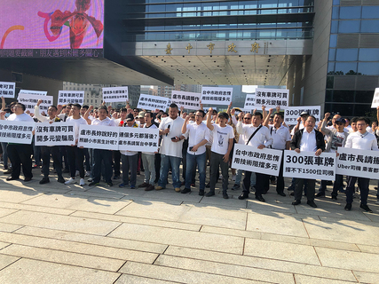 「無牌可掛,多元變騙局」!18日超過300名Uber司機集結台中市府廣場,高舉「台中市府技術阻擋多元」等標語抗議,交通部訂定「Uber條款」的輔導期限將於本月底截止,但台中市開放的多元計程車隊不但車隊少,...