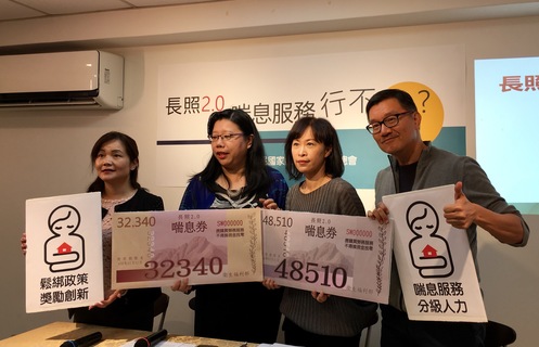 「照顧者也要喘息!」家庭照顧者總會15日提出「喘息券」及「互助喘息」概念,要讓家庭照顧者有選擇如何休息及由誰頂替自己原本工作的權利,以此提升照顧者士氣、減少孤立感,能帶動被照顧者如失能者、老人、身心障礙者...