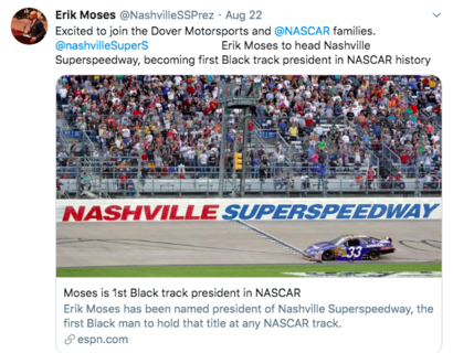 全美競速賽車協會(NASCAR)宣布莫西斯成為賽道新任總裁,也是史上首位黑人總裁!NASCAR日前發表聲明,確定由49歲的黑人莫西斯擔任賽道新總裁,莫西斯的首要任務將是負責重啟10年前喊卡的納什維爾超級賽...