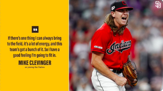 MLB交易大限截止前終於迎來重磅炸彈,教士與印地安人涉及9人的交易案中,教士引進強投克里文傑!MLB專家1日分析,教士連同日前補強的牛棚和打線,陣容大幅升級,堪稱是今年最成功的操盤者。而保有季後賽希望的藍...