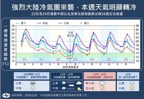 周一稍稍回溫,但周二又要冷起來了!氣象局表示,周一由於東北季風減弱,各地回暖,北部高溫將回升至26度,中南部也會來到27度。然而好天氣持續不久,氣象專家彭啟明預估,周二下半天,東北風將再度加強,北部、東半...