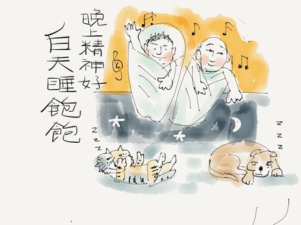 有人說貓狗每天睡覺的時段不一定,可我們家那兩隻貓狗的作息卻規律無比:永遠是白天睡得很沉,深夜還聽到牠們在大廳低聲叫喚。我跟小妹以前總搞不懂為什麼,這次回到老家才發現其中緣由。 這一貓一狗叫阿喵和阿汪...