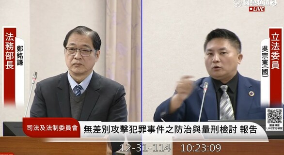 「法務部應該結合前科、精神就醫等資料,及早揪出可能犯下隨機殺人案的凶嫌!」藍委吳宗憲31日質詢法務部長鄭銘謙時提醒,鄭捷與1219殺人犯都是社交孤立者,若用網路搜尋不見得能找到嫌犯,應與衛福部、教育部整合...