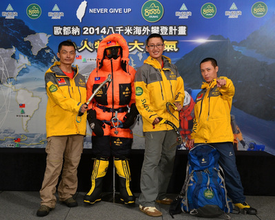 小人物,大勇氣,台灣攀登隊挑戰八千公尺高峰。曾兩度挑戰世界第12高峰布羅德峰,最後卻鎩羽而歸的台灣歐都納攀登隊,18日將再度出發,挑戰為期53天的登峰任務。 16日的行前記者會上,攀登隊員張元植、黃...