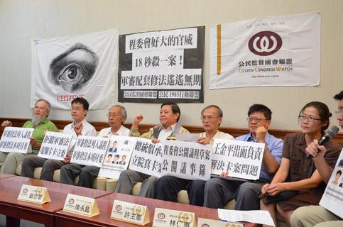 針對立法院程序委員會阻擋法案,民間團體28日要求應立即將軍審法等議案排入議程;公督盟執行長張宏林表示,若軍審法本周再遭阻擋,將發起癱瘓立委電話行動。立委林鴻池受訪時強調,軍審法已經通過,目前只有42件因為...
