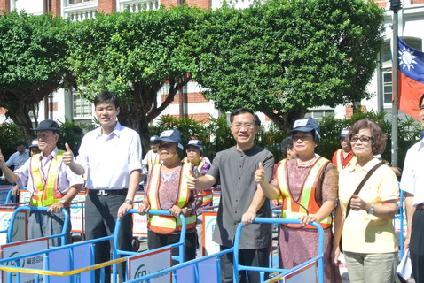 各縣市環保局關懷貧寒資源回收個體業者(俗稱拾荒業者),台中市15日特別致贈65位資源回收個體業者專用手推車,台中市副市長蔡炳坤表示,資源回收個體業者的經濟狀況不佳,手推車是他們最需要的工作工具。新竹市、台...