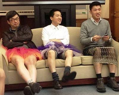 「我裙下的東西,都是屬於我的!」立委段宜康穿著短裙並大聲宣示。由於裙子內沒有加褲裝,他終於能體會這句話的重要了。為了宣傳《第10屆陰道獨白舞台劇》,台灣女人連線等主辦單位於26日邀請5位男性立委與議員,在...