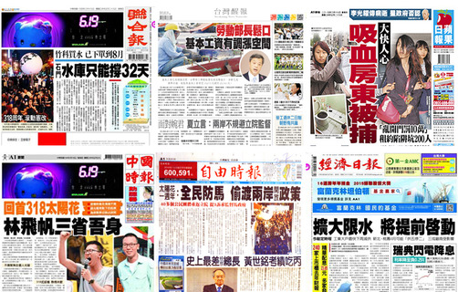 水情拉警報,第3階段限水將提早啟動,成為19日《聯合報》、《經濟日報》的頭條。《聯合報》報導,石門水庫只能再供水約32天,第三階段限水措施,將被迫提前在下月中啟動;《經濟日報》則報導,經濟部工業局調查,一...