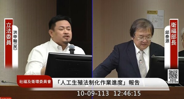 衛福部長邱泰源承諾12月將《人工生殖法》修正草案送行政院,但綠委洪申翰、林楚茵9日呼籲應該先開放單身未婚女性與女同志伴侶進行人工生殖,不要一次就全面開放!林楚茵強調,代理孕母有道德倫理爭議,也可能產生子宮...