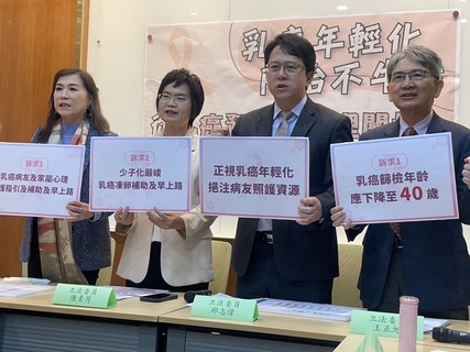 乳癌成為女性癌症發生率第一名,更出現年輕化的趨勢!民進黨立委邱志偉等人24日召開記者會提出「下修乳癌篩檢到40歲」、「及早提出病友心理照護」與「凍卵補助指引」等三大訴求。對此,衛福部國健署副署長魏璽倫回應...
