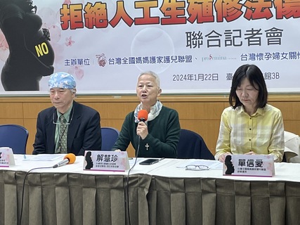 「台灣不應該把女性當作代孕工具,只要投入金錢就能得到嬰兒!」台灣全國媽媽護家護兒聯盟副秘書長單信愛22日於記者會指出,台灣孕婦平均死亡率較日、英高出四倍,不應貿然開放代孕。台灣婦女維護生命協會創會理事長解...