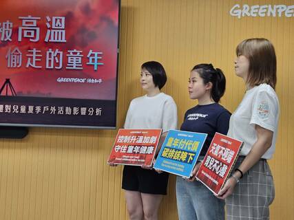 「氣候變遷讓小孩適合出門玩的時間減少,政府應加速減碳、增加戶外場所散熱機制!」綠色和平15日公布研究指出,高溫讓台灣40年來平均熱傷害時間增加213小時、2023年已有52天不適合出遊。綠色和平呼籲政府減...