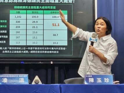 「51%民眾認為總統賴清德傷害台灣民主、48%認為檢方針對性辦案,民眾已不相信司法!」國民黨8日舉行記者會公布民調,藍委陳玉珍指出,多數民眾認為賴清德操控司法、透過檢調針對在野黨進行政治攻防。藍智庫副執行...